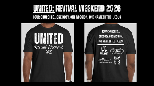 Show your support for United: Revival Weekend with a special event t-shirt! These shirts feature our theme, "four churches...